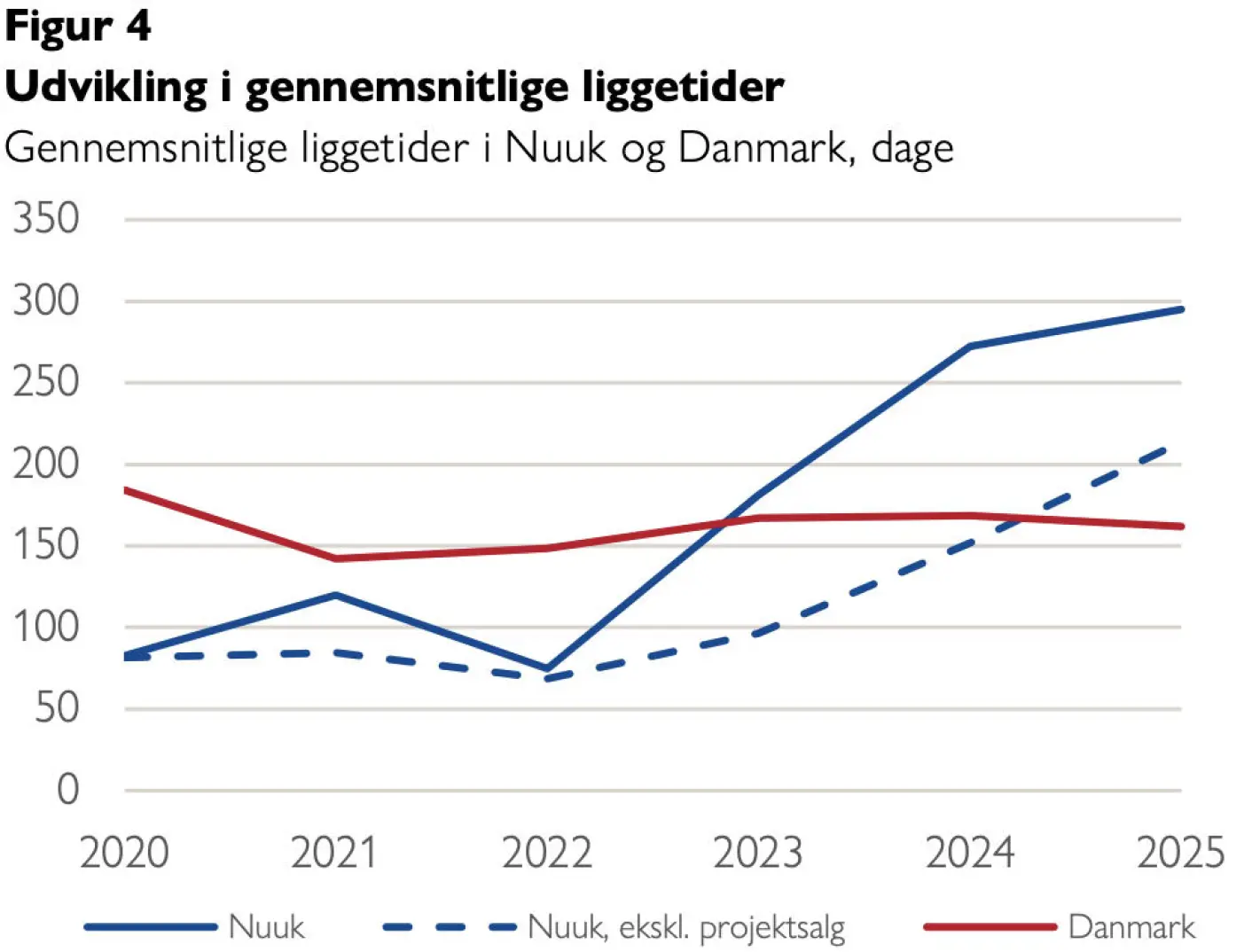 De gennemsnitlige liggetider for ejerboliger, der blev sat til salg, var i 2022 kun 75 dage. Men så steg boligrenterne og liggetiderne var frem til tredje kvartal i 2025 helt oppe på 300 dage, viser en analyse, som Grønlandsbanken har offentliggjort i årsrapporten for 2025.