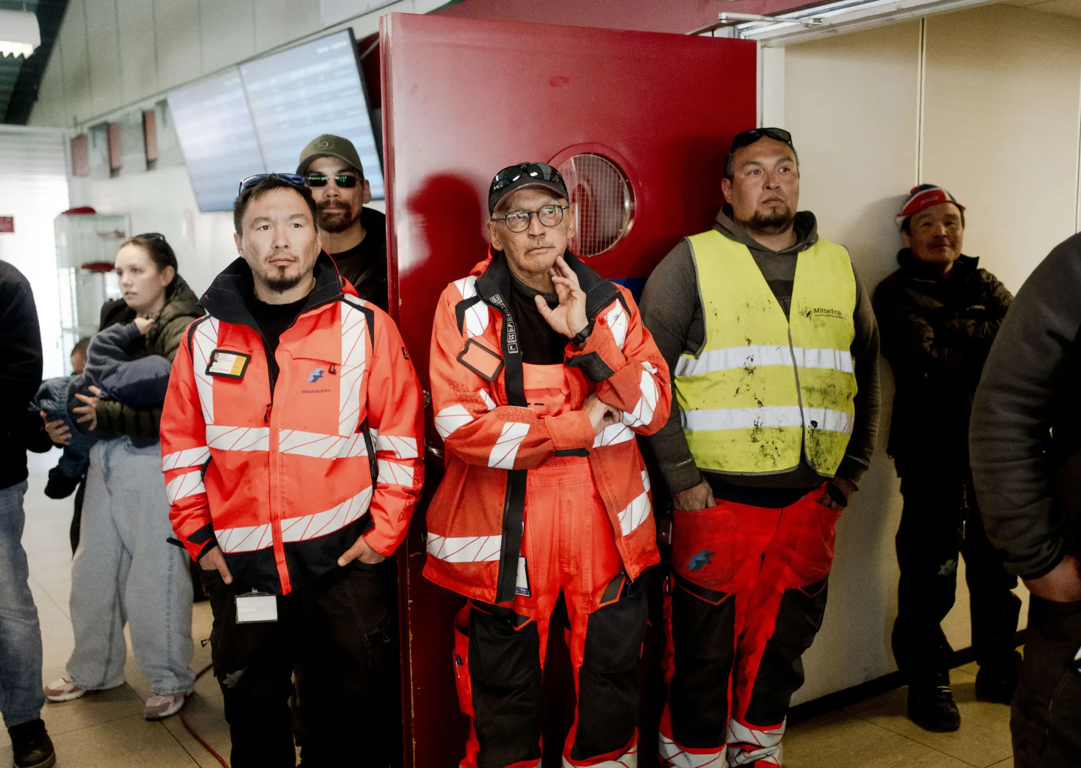- Vi er heldige at have et hus i Narsaq. Vi kan flytte derhen, men der er mange andre, der ikke har et hus et andet sted og bare kan flytte. Folk samles endnu en gang udenfor. Det er tid til den allersidste afgang fra Narsarsuaq Lufthavn.
