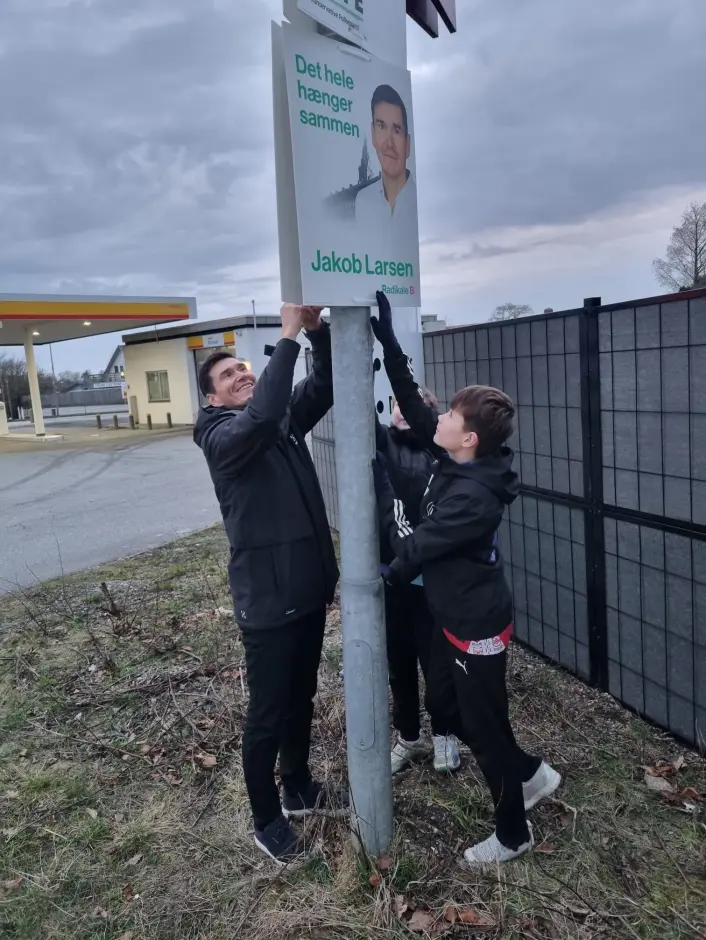 Jakob Larsen har i forvejen en rimelig travl hverdag med håndboldtræning, rejser og kampe, og bruger nu den resterende sparsomme tid på at medvirke i debatter, interviews og dele bolsjer og flyers ud til borgerne på Fyn, hvor han er opstillet.