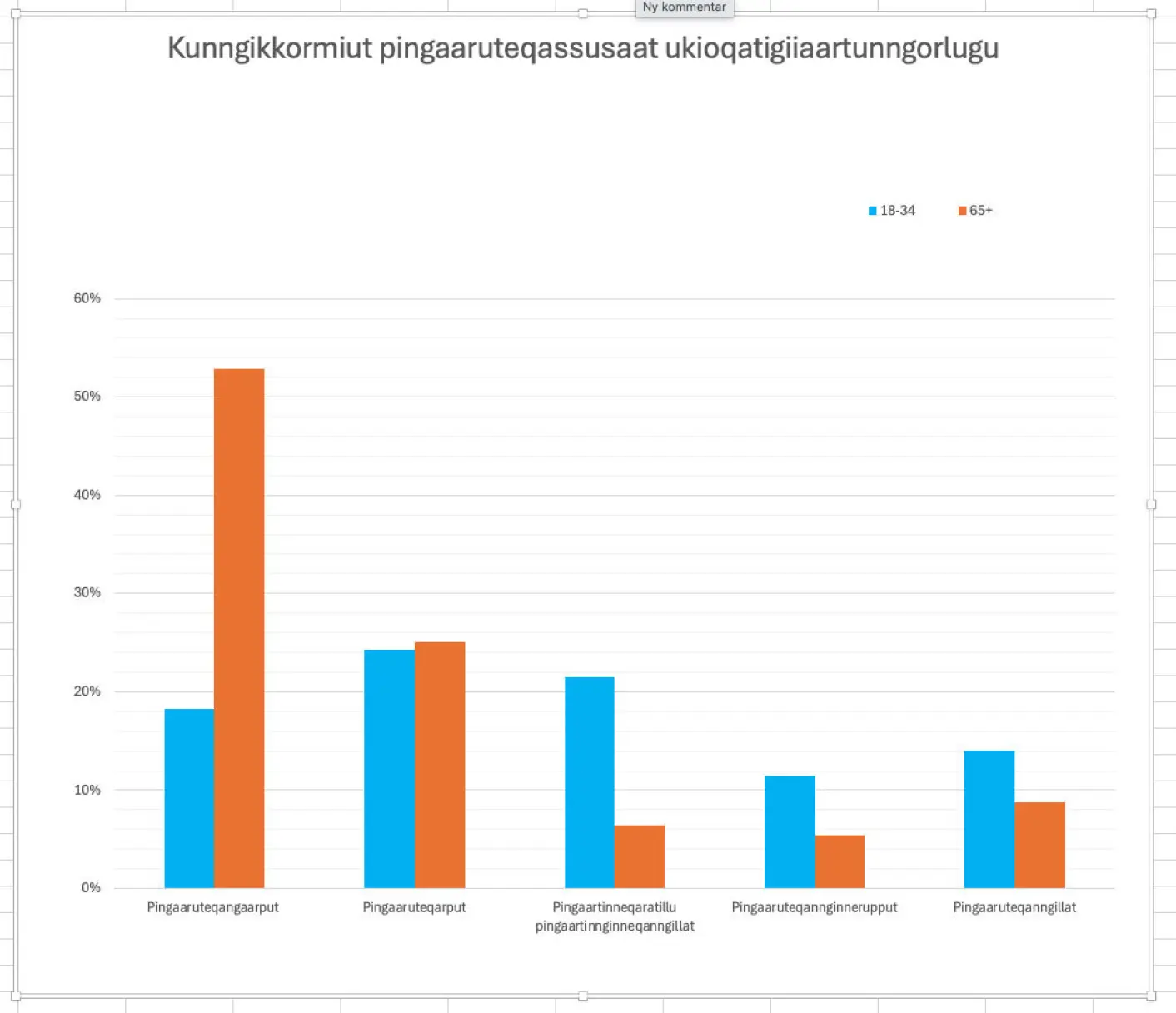 Utoqqaat 65-it sinnerlugit ukiullit akornanni kisitsisit allaanerulluinnarput. Taakkunani 53 procentit kunngikkormiut pingaartilluinnarpaat.