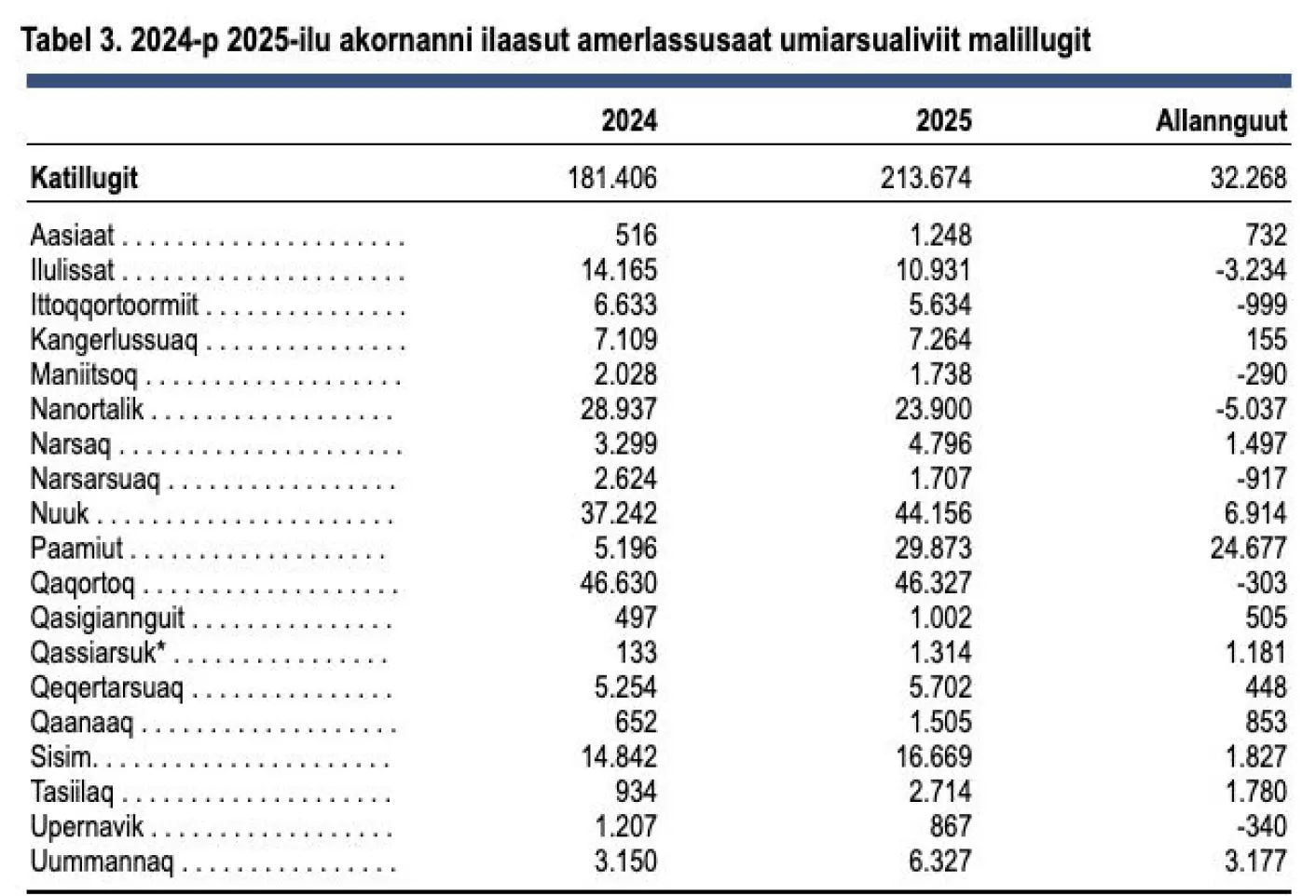 2025-mi umiarsuarnik tikinneqarnerpaat ima isikkoqarput — 2024-mi inissisimanerat parentesi iluaniilluni: