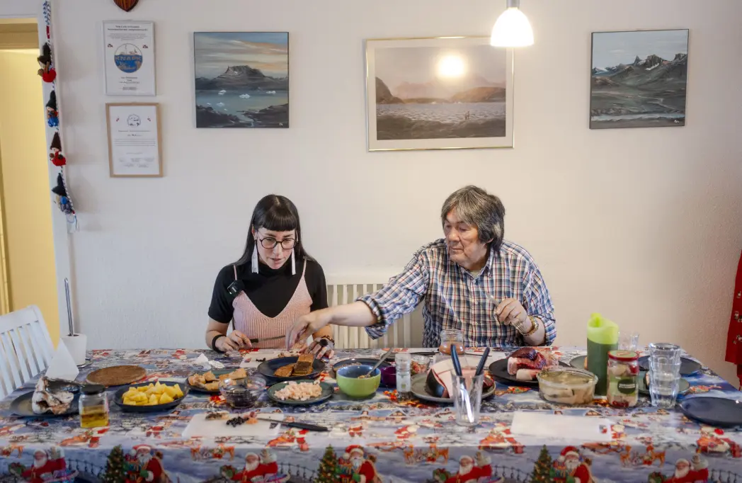 Røget laks, sildepisker, sæltarm og spæk. Duften af grønlandsk mad fylder hele rummet. Det føles hjemligt og nostalgisk – som et sted, man har været før.