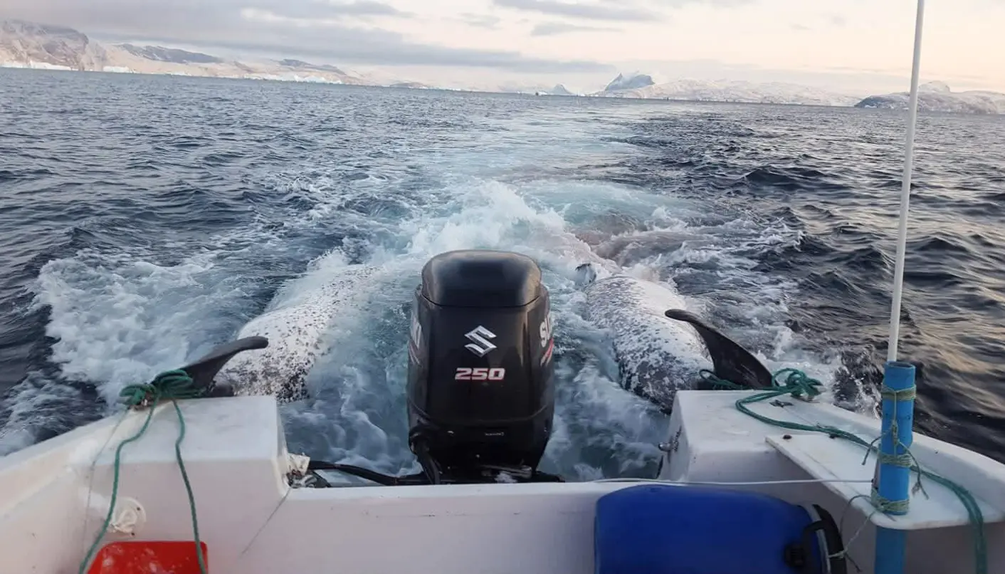 Qilalugaq tassanngaannaq puivoq, arnallu sukkaannaq tungaanut aallarput. Silaannaq tarajorsunnillunilu pissanganermik ulikkaarpoq. Umiatsiat allat amerlanngitsut qilalugaq aamma takuaat.