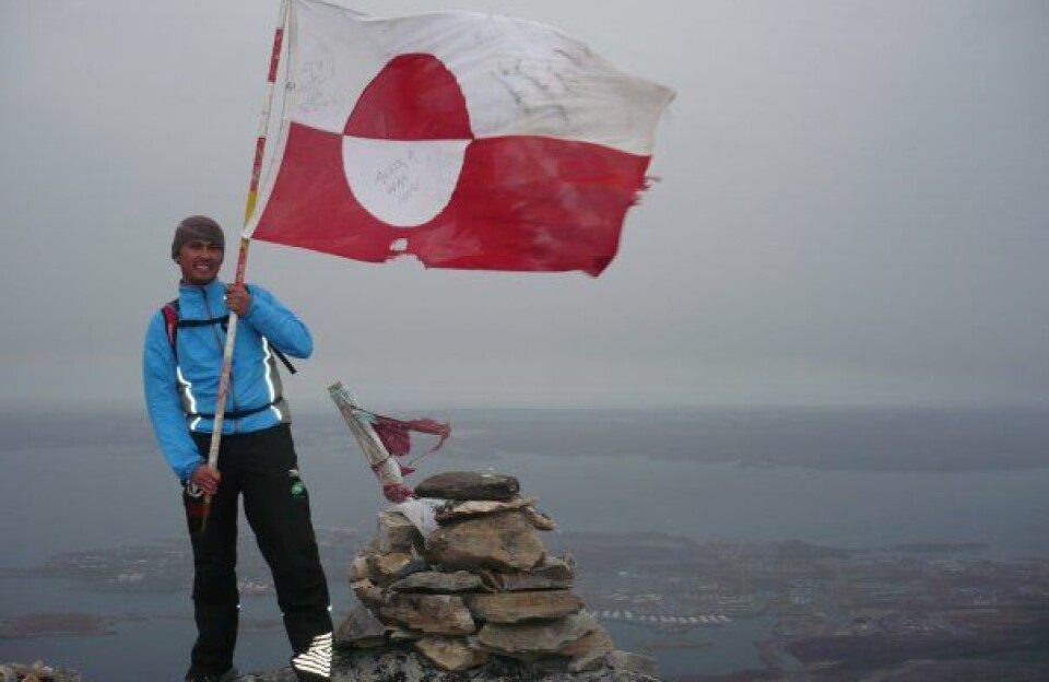 Det grønlandske flag, der i dag hejses på toppen af Ukkusissat, er sponsoreret af Stochholm Elteknik.