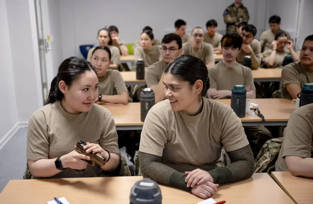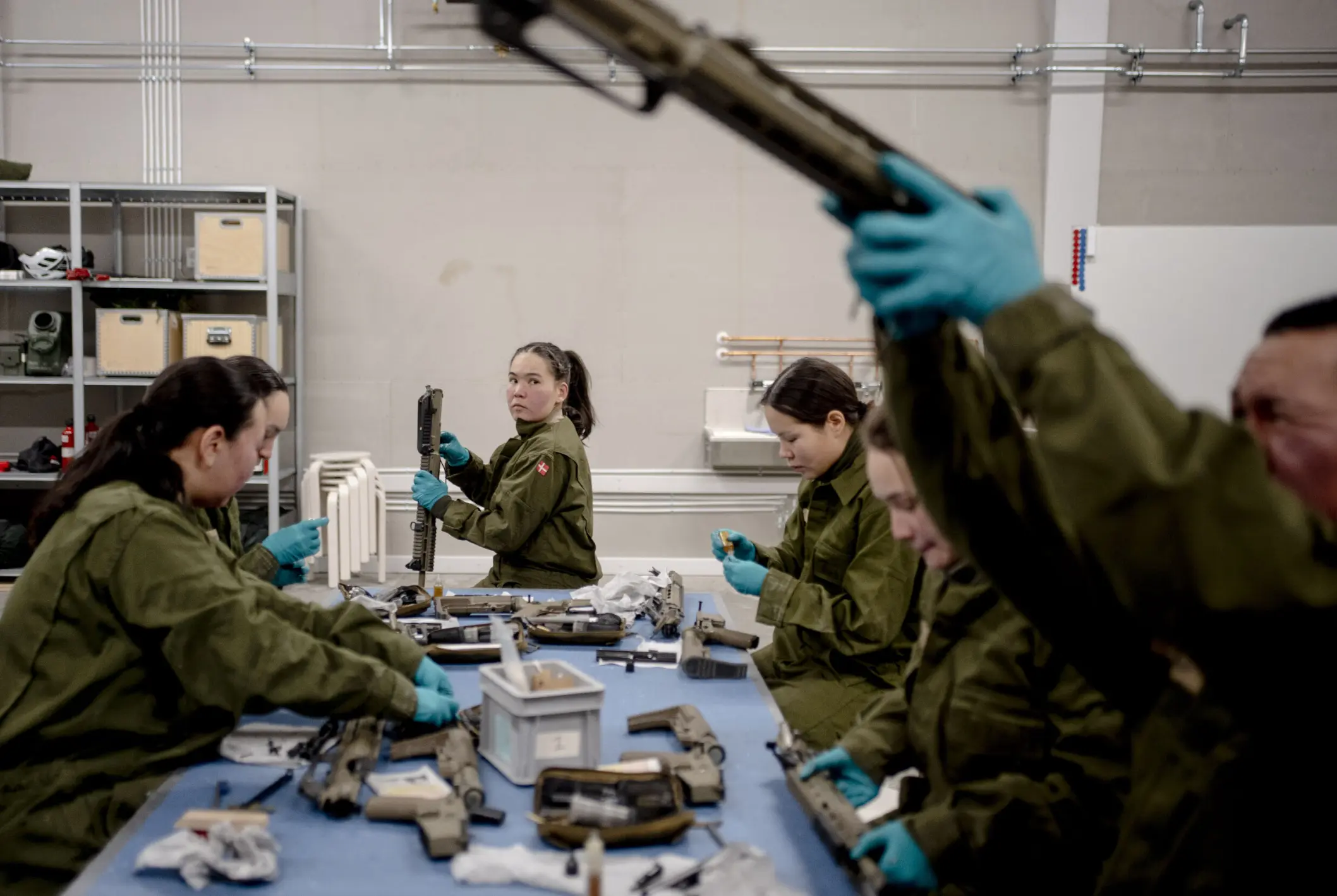 - Vi arbejder sammen i felten, så det her er en god måde at lære dem (Arktisk Basisuddannelse) at kende. Vi er her for at hjælpe dem, så de kan forsvare deres land. Vi er her, fordi vi vil, og ikke fordi vi er tvunget, siger Freja Schmidt i den rungende hal.