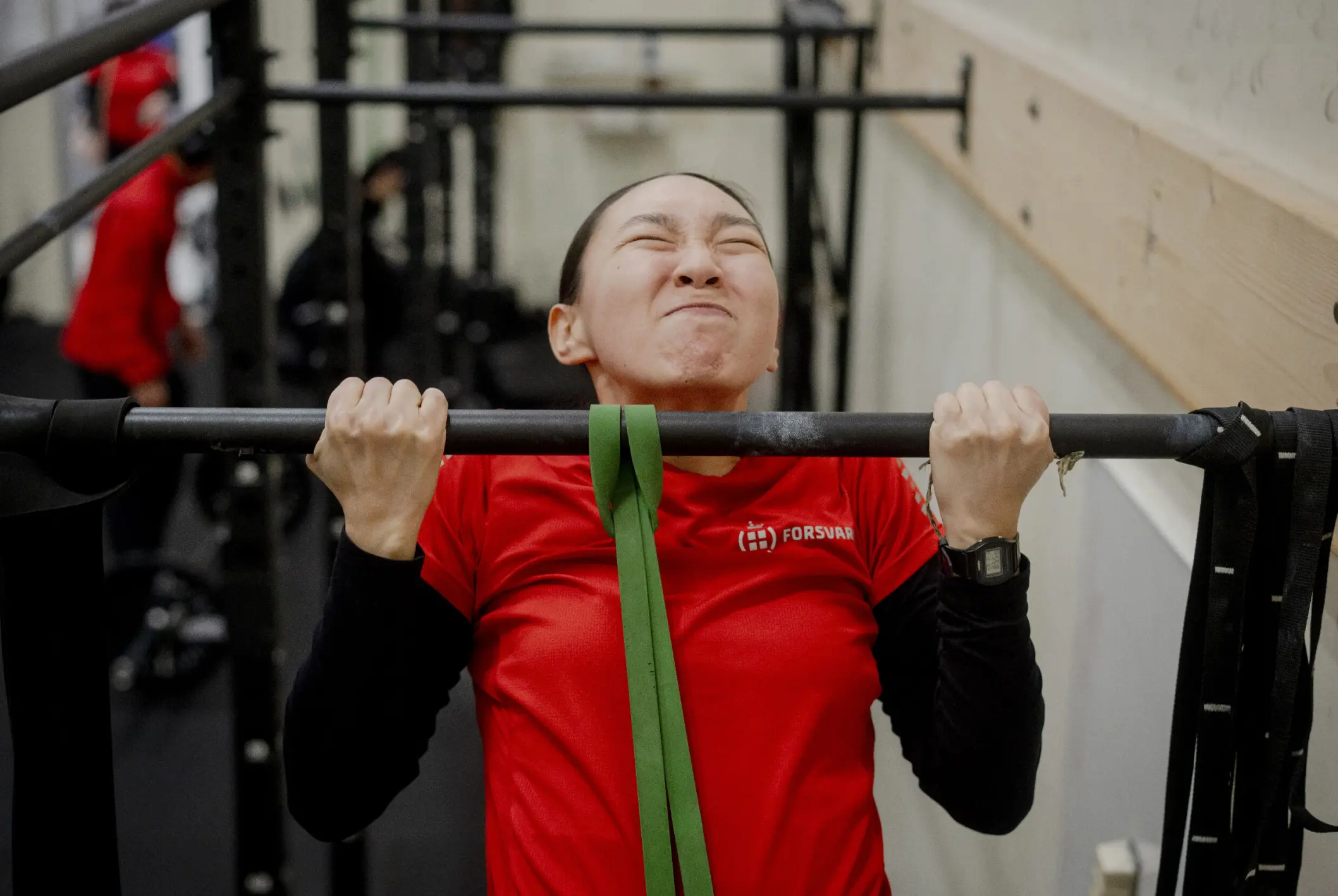 I matchende røde t-shirts med teksten "Forsvaret" på ryggen peger og dirigerer rekrutterne fra ABU rundt i hallen i Kangerlussuaq. Der er idrætsdag, og ABU har inviteret andre soldater, der som led i den danskledede militærøvelse Arctic Endurance er i Kangerlussuaq, til at konkurrere i Arctic Games, som en slags rigfællesskabs-kulturudveksling. Freja Schmidt er én af de udsendte soldater fra det Jyske Dragonregiment, som er med på idrætsdagen.