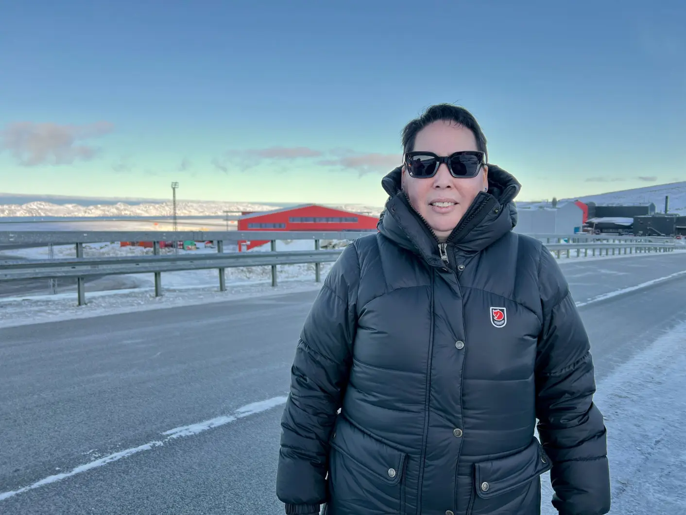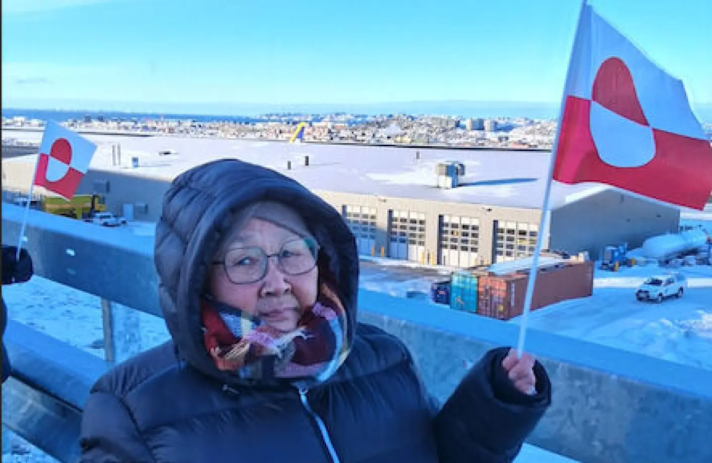 Hansine Lyberth venter på kongen i Nuuks lufthavn. Hun vil tage til kaffemik i Katuaq til eftermiddag. Foto: Arnaq Nielsen - Jeg holder ferie i Nuuk, og derfor har jeg brugt muligheden for at se ham ankomme og følge ham i hans besøg. Jeg skal også hjem til Maniitsoq i morgen. Dagen i dag vil jeg bruge til at følge med, og tage til kaffemik i Katuaq til eftermiddag, siger Hansine Lyberth til Sermitsiaq.