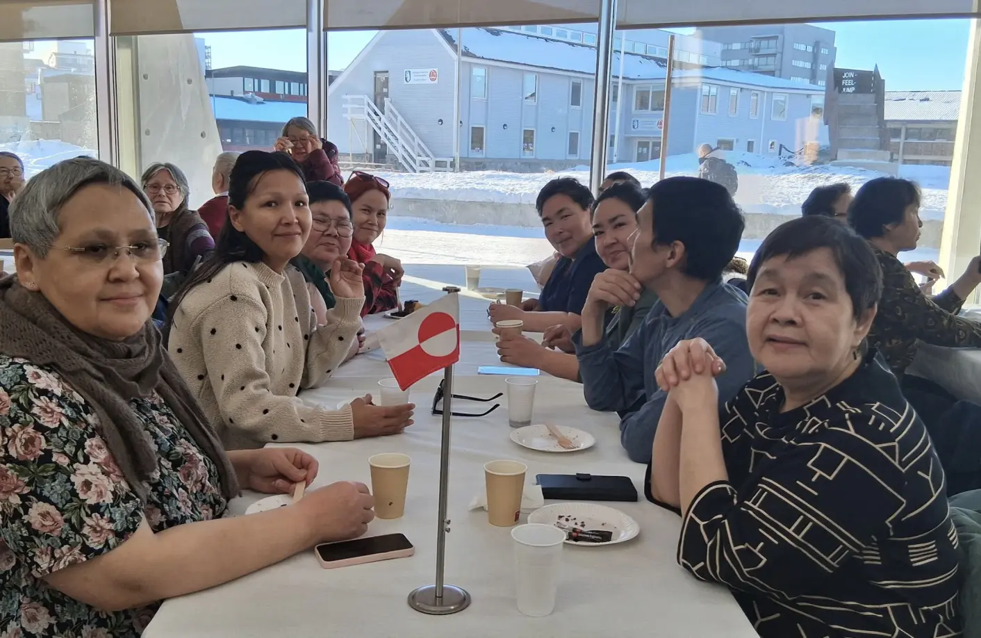 Sussi Høegh fra Ilulissat og Elisabeth Thorin fra Qasigiannguit er et par af gæsterne i Katuaqs kaffemik. Foto: Masauna Peary -