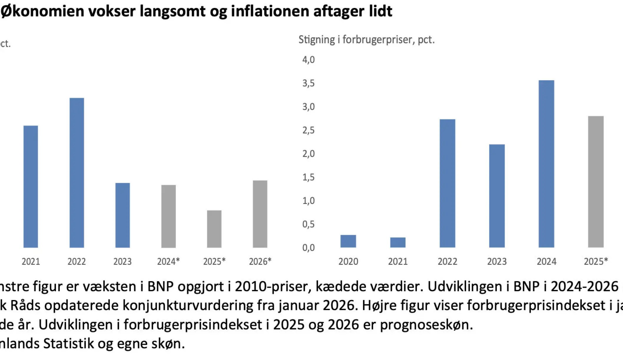 Det er økonomernes vurdering, at bruttonationalproduktet i 2025 kun vil være vokset med beskedne 0,5 procent,