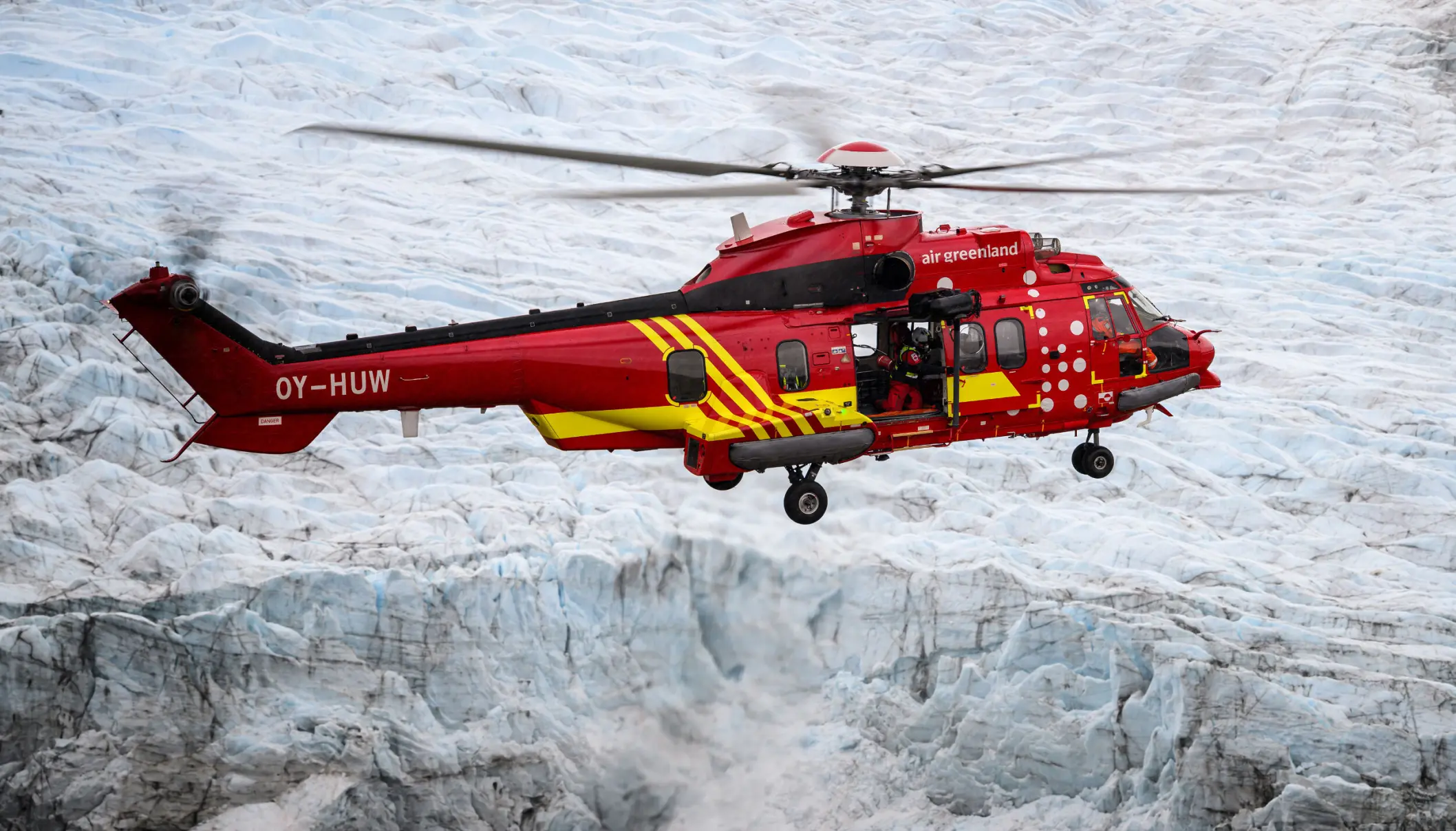 Air Greenland har afisningsudstyr på de to største helikoptere – SAR-helikopterne af typen H225, hvorimod der ikke er tilsvarende udstyr på H125 og H155, der bruges på ruteflyvningerne i Nord-, Øst- og Sydgrønland.