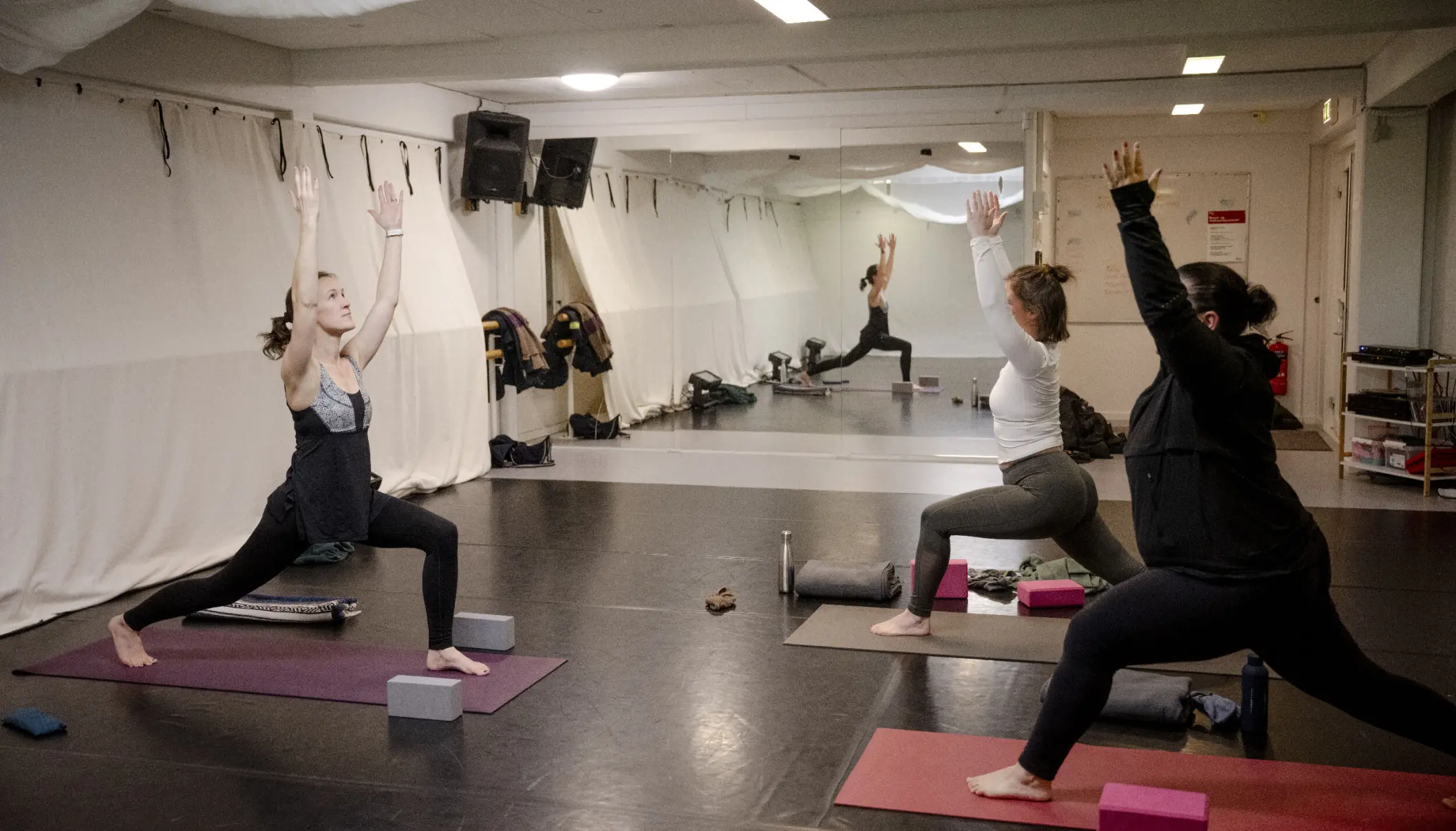 Nini Kleist (forrest) har inden for de sidste par måneder været til yoga i Godthåbshallen cirka fem gange. Her kan hun slippe sine bekymringer om fremtiden og fokusere på sin krop og vejrtrækning.
