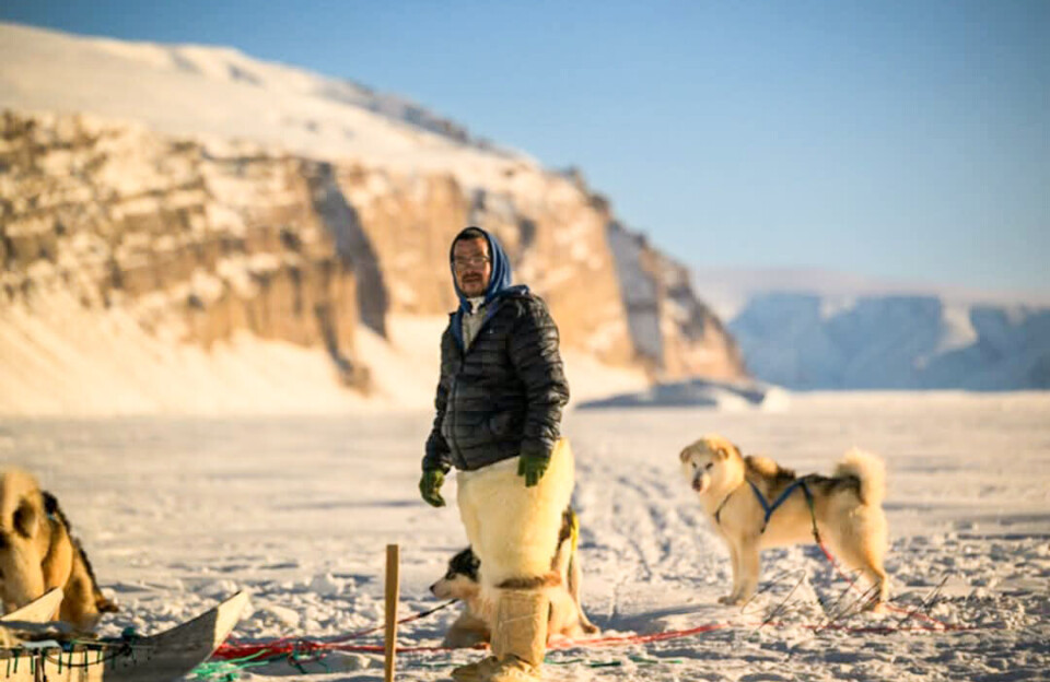 The family Kristensen is on his way out with the dog sleds. They ride in several sleds, and Olennguaq Kristensen's son follows in his own. The goal is clear: They must out and catch sea kings.