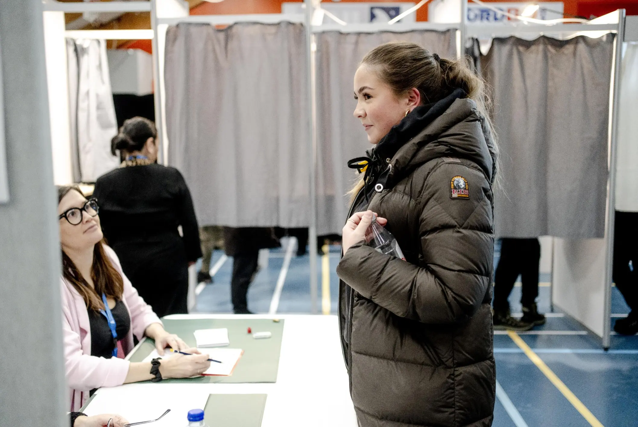 It is quickly Fina Winberg's turn. She goes to the white table and is handed the ballot paper where she is to write the name of the party or candidate she wants to vote for.