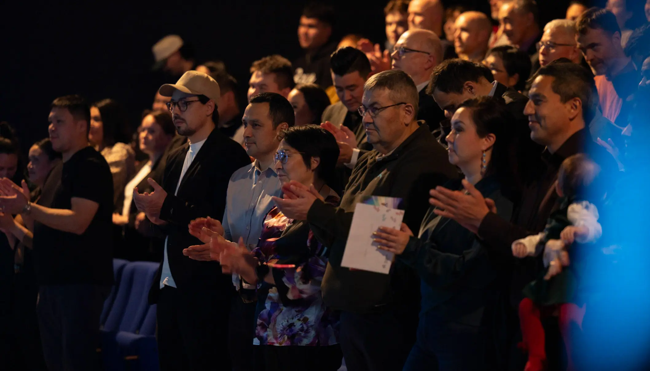 Og det blev vi i dén grad mindet om. Inde i Hans Lynge Salen er der smukt pyntet op. Fra loftet hænger det grønlandske flag og festlighederne indledes med, at publikum rejser sig og synger Nunarput utoqqarsuanngoravit – sammen.