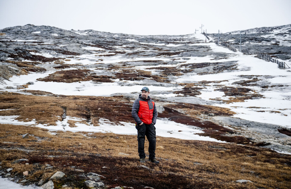 It looks black. Almost completely black. From his corner office with a view of both the small and the large ski lift, operations manager Qulu Heilmann can state that one crucial thing is missing for the season to begin: snow.
